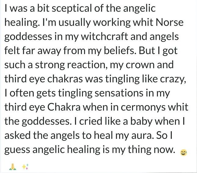 the Angelic healing, both forms of healing I didn't even know existed before!"